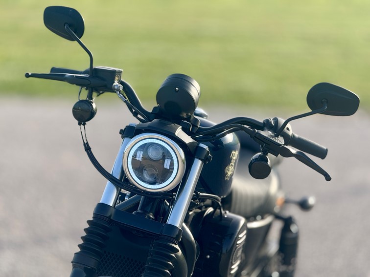Linhas baixas, postura imponente e aquele azul profundo que muda com a luz como um camaleão bem comportado. Uma mota que não pede atenção — ela simplesmente leva-a.